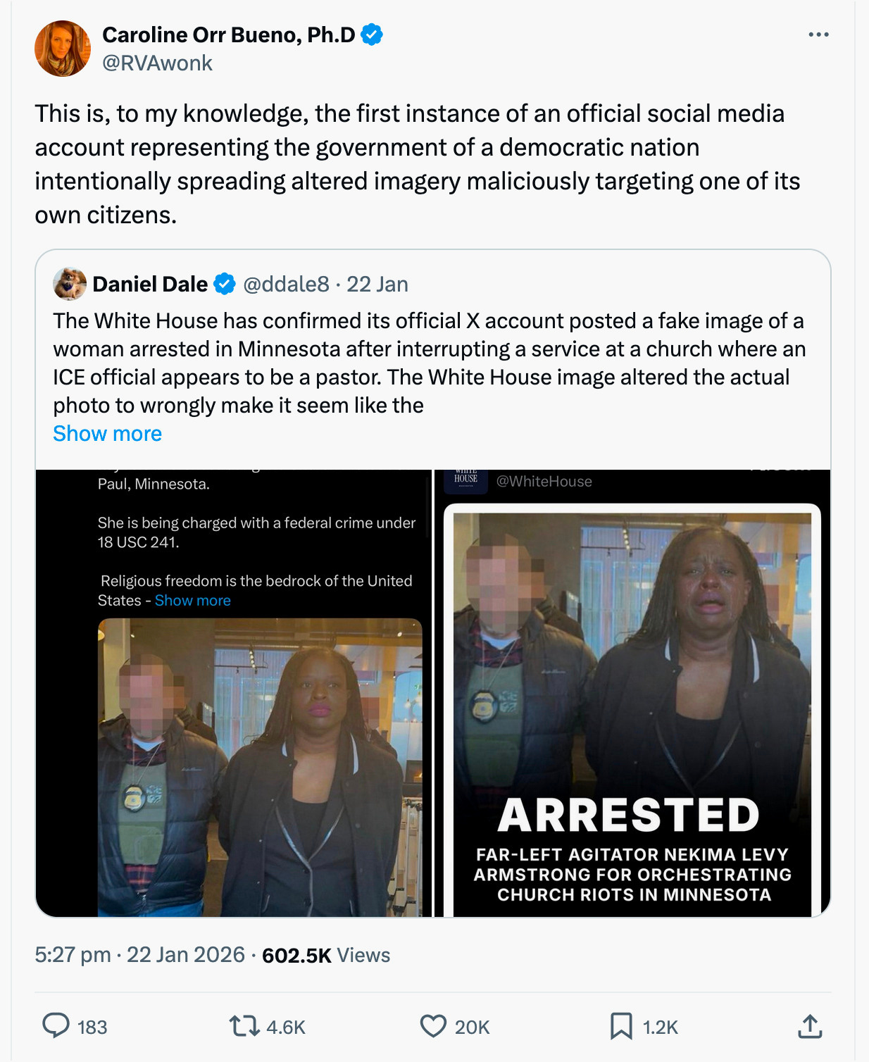 Because it’s been an awful couple weeks. For starters there was this, the first known instance of “an official social media account representing the government of a democratic nation intentionally spreading altered imagery maliciously targeting one of its own citizens.”